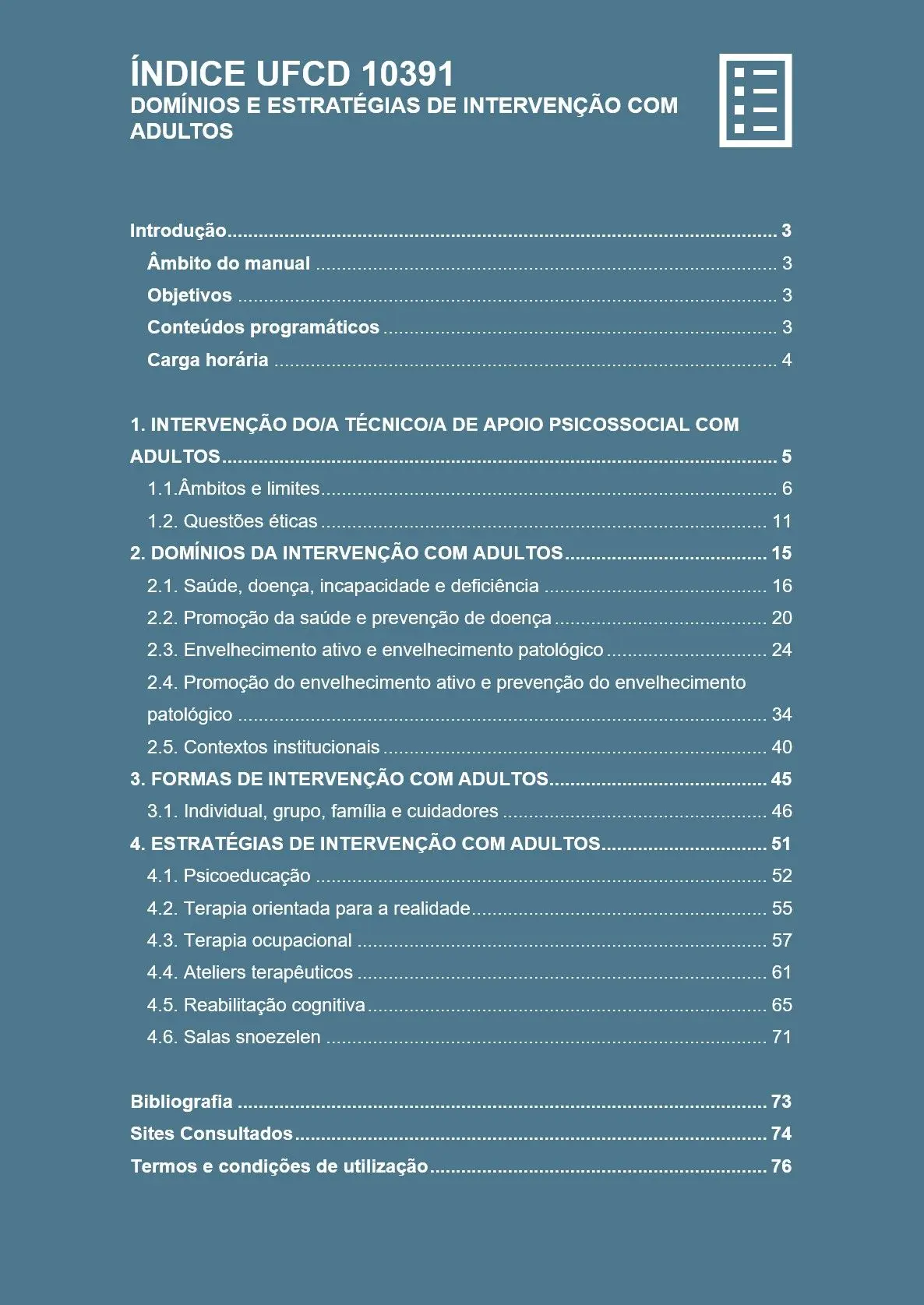Manual UFCD: 10391. Domínios e estratégias de intervenção com adultos
